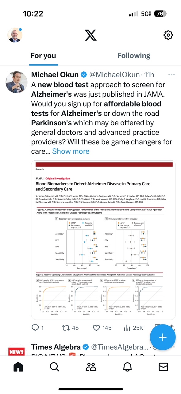 Screenshot 2024-07-28 Okun on biomarkers for Alzheimer’s and Parkinson’s Posted byJoseph Thornton MDJuly 28, 2024Posted inBlog Joseph Thornton Share this: Share on X (Opens in new window) X Share on Facebook (Opens in new window) Facebook Like Loading... Related Published by Joseph Thornton MD Teacher, Clinical Supervisor Clinical Associate Professor, Psychiatry University of Florida Affiliation is for identification only. All content and opinions are my own. View more posts