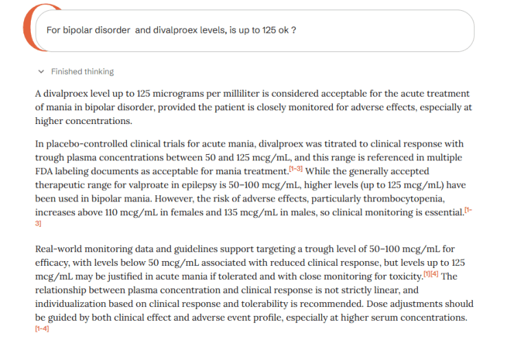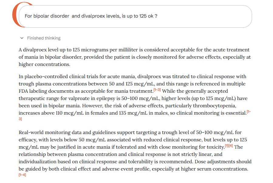 Bowden CL, Janicak PG, Orsulak P, et al. Relation of Serum Valproate Concentration to Response in Mania. The American Journal of Psychiatry. 1996;153(6):765-70. doi:10.1176/ajp.153.6.765. PMID: 8633687 is the citation by Dr. Charles Bowden from the mid-1990s specifically addressing divalproex in bipolar disorder. [1]